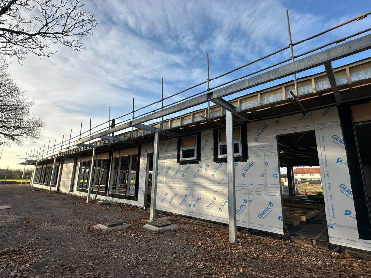 Inside the building, the first stages of internal walls are starting to appear, with timber base frames being fitted to form recognisable rooms and learning spaces.