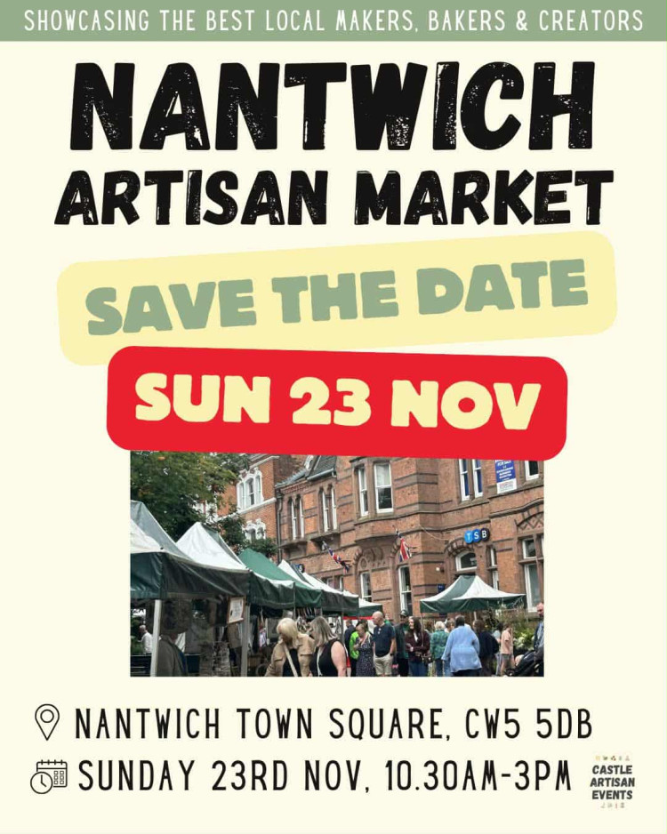 Nantwich Artisan Market returns to the Town Square on Sunday 23 November.