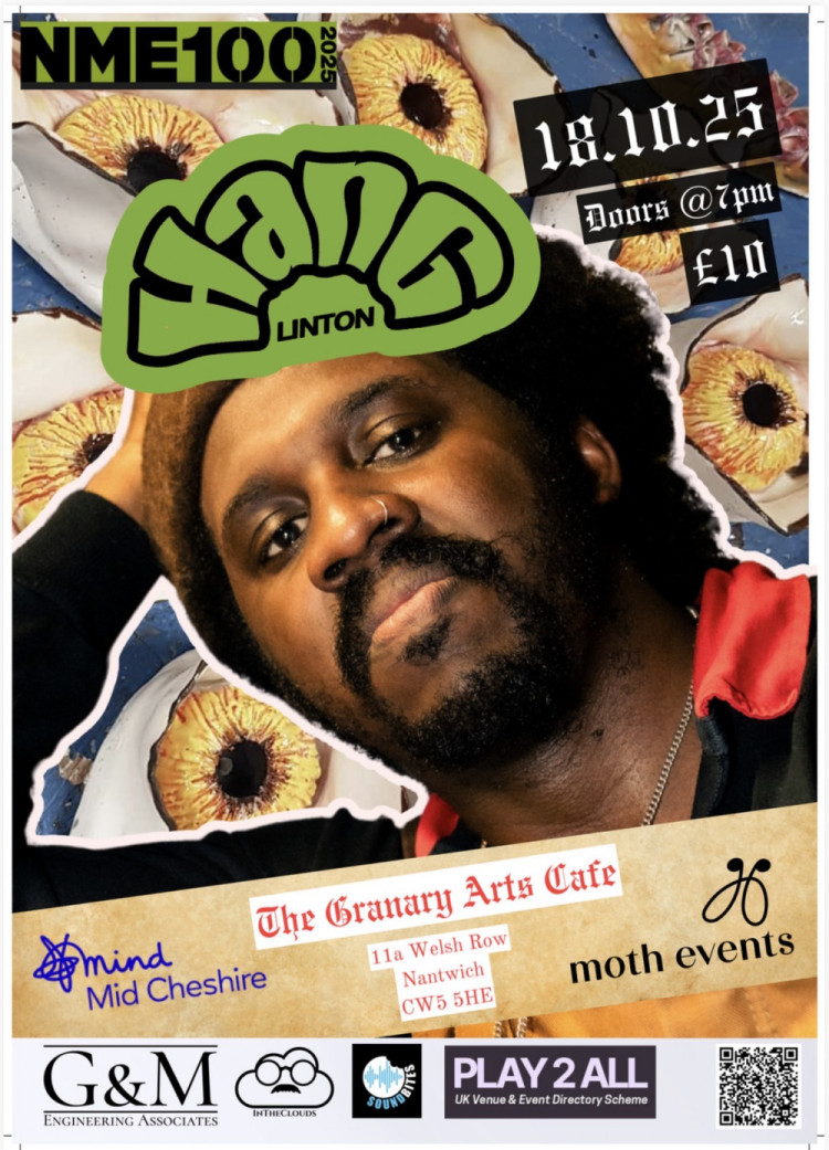 Named one of the NME HOT 100 for 2025 & BBC 6 Music's "Hot Tip", Hang Linton will headline The Granary Arts Cafe's October fundraiser for MidCheshire Mind.