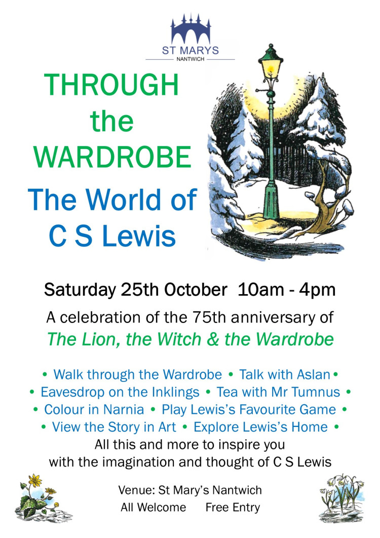 Nantwich is set to celebrate the world of C.S. Lewis as St Mary's hosts a special event marking the 75th anniversary of The Lion, the Witch & the Wardrobe on Saturday 25 October, from 10am to 4pm.