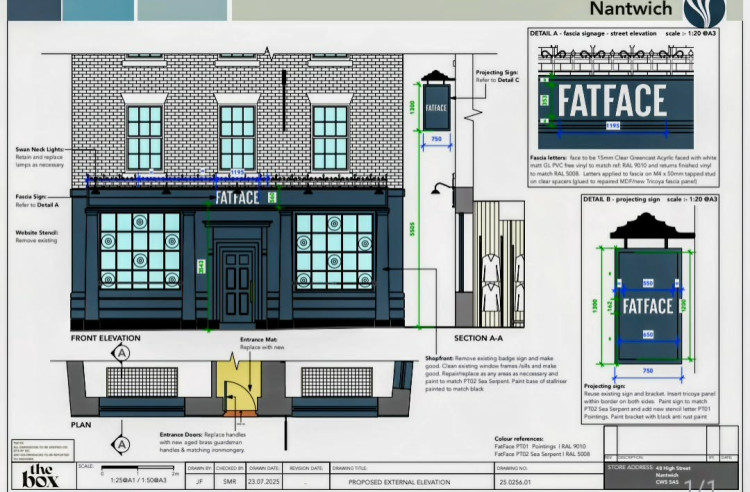 A design and access statement on behalf of FatFace, reads: "The Box Design team have been appointed by FatFace Ltd to develop proposals for the repair and redecoration of the existing shopfront.