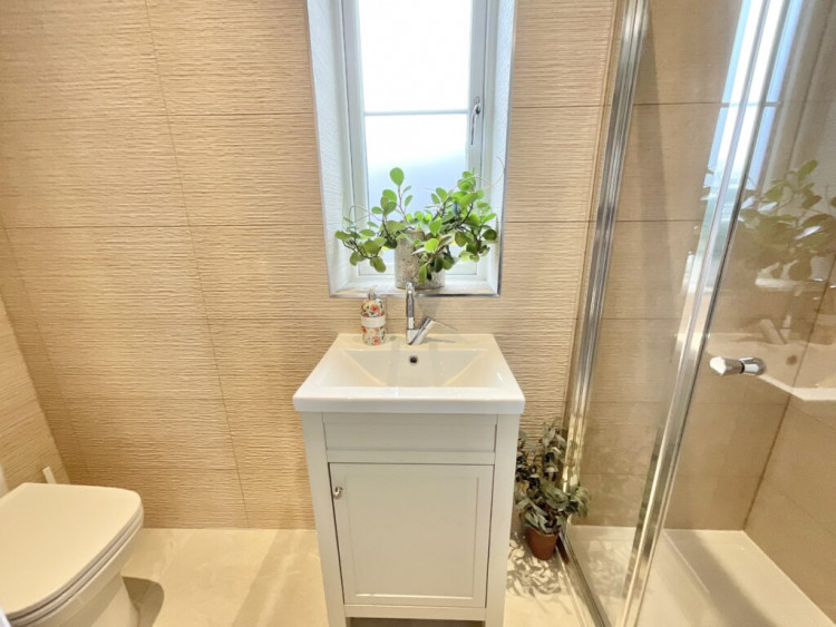 The second double bedroom enjoys its own contemporary en-suite with a mains-fed shower, wash basin and WC.