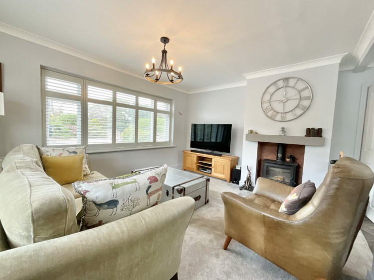 "The spacious living room is bright and inviting, centred around a charming log burner that adds warmth and character—making it a perfect space to relax year-round.